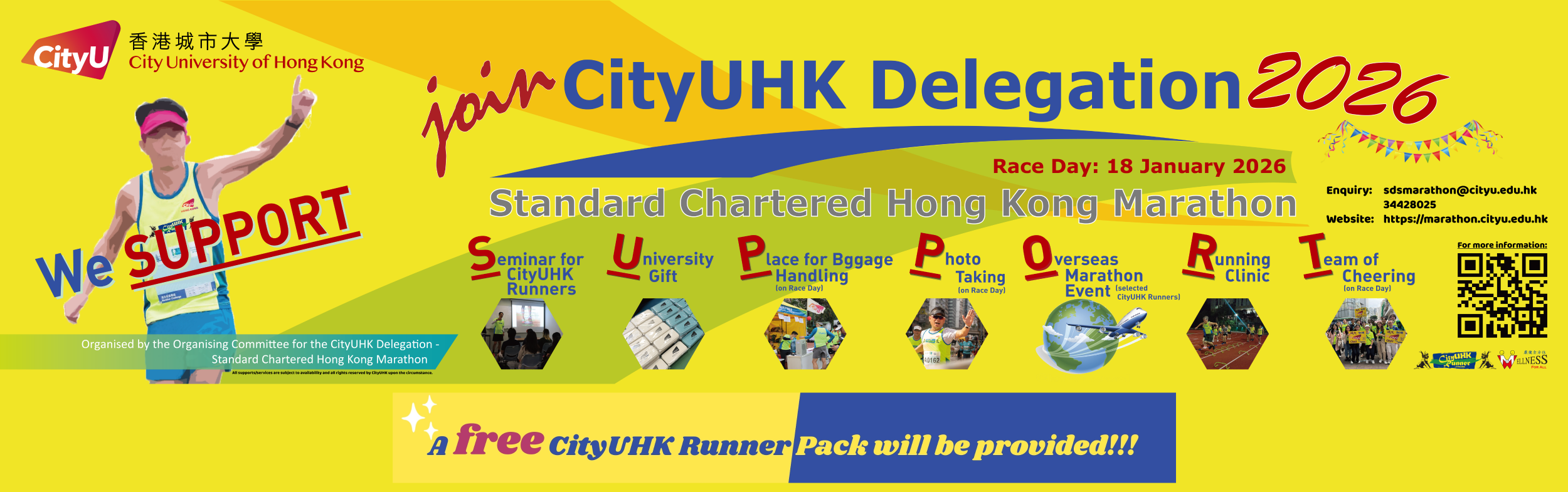 You can enrol CityUHK Delegation Hong Kong Marathon here. Besides, we also have Running Clinic and Briefing Seminar available for the CityUHK marathon runners.